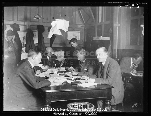 The Daily Herald sub editors' room in about 1928. From the Daily Herald Archive